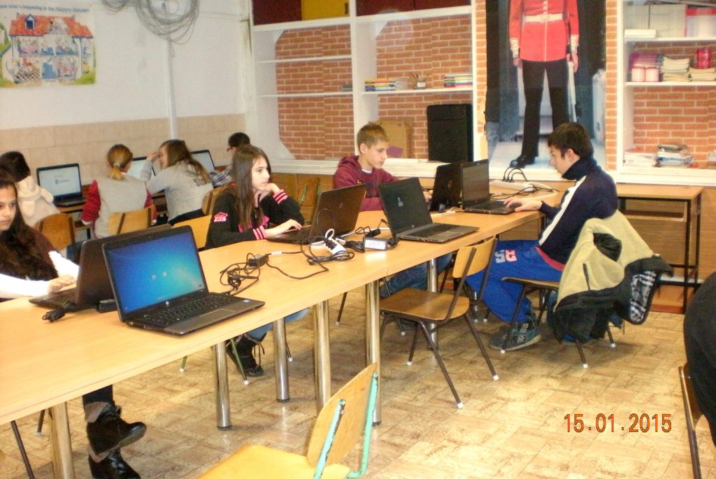 A diákok egyedül dolgoztak az informatika teremben. Az interneten végzett kutatás eredményeiből ismét mini projekteket készítettek.